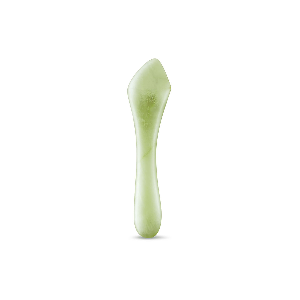Ενδυναμώστε την περιοχή γύρω από τα μάτια και τα χείλη σας με αυτό το εργαλείο για guasha μασάζ από νεφρίτη. Αυτό το εργαλείο δεν μοιάζει με κανένα κι αυτό γιατί μπορείτε να περιποιηθείτε την επιδερμίδα σας με μεγάλη ακρίβεια στις κινήσεις σας. Χρησιμοποιείστε το και θα δείτε το δέρμα σας άμεσα να βελτιώνεται. Σε ένα λεπτό η χρήση του νεφρίτη χαρίζει θρέψη και καταπραΰνει την επιδερμίδα, παράλληλα τονώνει τη μικροκυκλοφορία και τη ροή της λέμφου, γεμίζει τις ρυτίδες, σμιλεύει και μειώνει τα πρηξίματα. Το ονομάζουμε “το μαγικό ραβδάκι” των guasha.